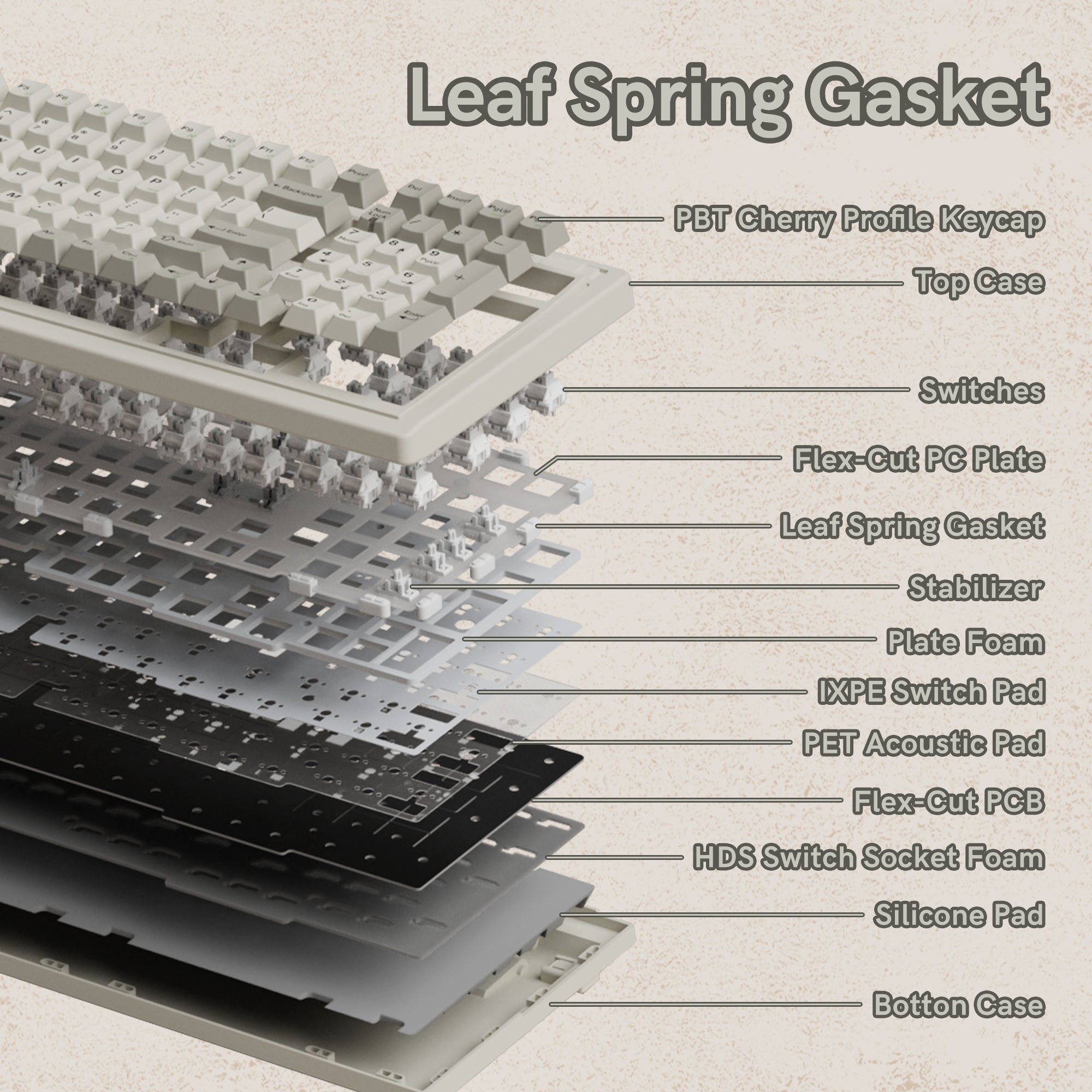 FL-Esports OG98 keyboard with a leaf structure gasket-mounted design. It offers soft elastic typing feedback. With a five-layered sound-absorbing internal structure, which it would improve your typing experience.